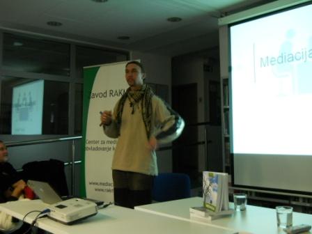 E-ČASOPIS ZAVODA RAKMO »Učenje brez razmišljanja je prazno, razmišljanje brez učenja nevarno.« Lao Ce ![]() VIP seminar - Transformativna mediacija: temeljna načela in praksa V četrtek, 10.11.2011 (dan pred Mednarodnim kongresom o transformativni mediaciji) bo v Ljubljani potekal edinstven celodnevni VIP seminar v angleškem jeziku Transformative mediation: core principles and practice (Transformativna mediacija: temeljna načela in praksa). Seminar bo vodil Joseph P. Folger, idejni oče transformativne mediacije in soavtor knjige »Obljuba mediacije: odzivanje na konflikt z opolnomočenjem in priznavanjem«, ki predstavlja temeljno delo s področja transformativne mediacije. Število mest na tem prestižnem dogodku je omejeno, zato pohitite s prijavo in si zagotovite sedež! Prijavite se lahko na elektronskem naslovu info@rakmo.si ali na telefonski številki 01 436 41 17 oz. 040 731 431. Za več podrobnosti o seminarju obiščite naslednjo povezavo. ![]() Predlogi za izvedbo delavnic na Mednarodnem kongresu o transformativni mediaciji Mednarodni kongres o transformativni mediaciji, ki bo potekal v Ljubljani 11. in 12.11.2011, namenja veliko prostora za izvedbo delavnic s strani mediatorjev, trenerjev in raziskovalcev iz celega sveta. Ker želimo udeležencem kongresa ponuditi čim bolj kakovostno vsebino, smo zainteresirani, da bi prenesli tudi vaše znanje in izkušnje na tem področju čim večjemu številu udeležencev. Če želite predlagati izvedbo delavnice, ne oklevajte! Rok za oddajo predlogov je 30.4.2011, obrazec predloga za izvedbo delavnic pa se nahaja tukaj. Izpolnjeni obrazec prosimo pošljite na elektronski naslov info@rakmo.si. Veselimo se vaših predlogov! ![]() Usposabljanje za mediatorje v podjetjih prvič v Ljubljani Pri Zavodu RAKMO se je sredi februarja pričela usposabljati prva skupina mediatorjev v podjetjih. Usposabljanje za mediatorje v podjetjih je sestavljeno iz dveh dvodnevnih seminarjev (32 ur), supervizijskega srečanja (8 ur) in izvajanja mediacije (10 ur). Udeleženci se seznanijo s sistemom mediacije v podjetju, z vlogo mediatorja v podjetju, z značilnostmi notranje in zunanje mediacije v podjetju ter pridobijo znanje za vzpostavitev sistema mediacije v lastnem podjetju. ![]() ![]() Seminar Razvijanje spretnosti obvladovanja konfliktov 16.8. - 20.8.2011 v Luciji V Luciji bo od torka, 16.8.2011, do sobote, 20.8.2011, potekal seminar Razvijanje spretnosti obvladovanja konfliktov (45 ur). Na seminarju bodo udeleženci poglobili razumevanje konflikta, razvili toleranco in občutljivost za konflikt, spoznali stile odzivanja ter se naučili tehnik akcijskega ter strateškega obvladovanja konfliktov. Velik del seminarja je namenjen igri vlog, vajam in praktičnemu urjenju. Udeleženci seminarja lahko, če to želijo, pridobijo tudi gradivo in licenco za izvedbo tovrstnih delavnic za srednješolce in osnovnošolce. Za več podrobnosti obiščite spletno stran seminarja, prijavite pa se lahko tukaj. Lepo vabljeni! ![]() Vabilo k ogledu oddaje ''Pogovor tedna'' na Net TV V ponedeljek, 4.4.2011, bo v oddaji ''Pogovor tedna'' na Net TV sodeloval tudi Marko Iršič. Tema oddaje bo mediacija. Oddaja bo na sporedu ob 20.00 uri. Vabljeni k ogledu! ![]() Oddaja ''Naj spregovorijo NVO: Žrtve nasilja'' Tokratna oddaja ''Naj spregovorijo NVO'', ki nastaja v produkciji Studia 12, je bila posvečena žrtvam nasilja. Oddaja prikazuje vlogo nevladnih organizacij na področju ozaveščanja, informiranja in pomoči žrtvam nasilja. Svoja mnenja so predstavili Zavod RAKMO, Zavod Emma in Društvo SOS telefon za ženske in otroke - žrtve nasilja. Za ogled oddaje obiščite naslednjo povezavo. ![]() Marko Iršič gost oddaje ''Za otroke in za starše'' na Radiu Aktual V ponedeljek, 14.3.2011, je Saša Einsidler v svoji oddaji ''Za otroke in za starše'' na Radiu Aktual gostila Marka Iršiča. Oddaja je bila namenjena šolski in vrstniški mediaciji. Na naslednji povezavi si lahko ogledate nekaj foto utrinkov iz studia, na voljo pa je tudi zvočni posnetek oddaje. ![]() Svetovni forum mediacijskih centrov 2011 V Atenah je 11. in 12.3.2011 potekal že 15. Svetovni forum mediacijskih centrov, ki ga je organizirala Mednarodna zveza pravnikov (Union Internationale des Avocats). Forum je bil namenjen izmenjavi izkušenj in razpravi o najnovejših smernicah na področju mediacije ter drugih oblik alternativnega reševanja sporov. Udeleženci foruma so lahko poslušali tudi predavanje Marka Iršiča, direktorja Zavoda RAKMO, z naslovom »Proaktivna mediacija v podjetjih«. ![]() Nadaljevanje 46. nujne seje Odbora za notranjo politiko, javno upravo in pravosodje V sredo, 23.2.2011, je v Državnem zboru RS potekalo nadaljevanje 46. nujne seje Odbora za notranjo politiko, javno upravo in pravosodje. Odbor je razpravljal o potrebnih ukrepih za pospešeno uvajanje alternativnega načina rešavanja sodnih sporov. Seje se je udeležil tudi direktor Zavoda RAKMO, Marko Iršič. Posnetek celotne seje je dostopen na naslednji povezavi. Vabimo vas, da si v zvezi s tem ogledate tudi naslednjo novico: http://www.iusinfo.si/DnevneVsebine/Novice.aspx?id=64150. ![]() Predstavitev mediacije »Mediacija - moč reševanja konfliktov« v Postojni V Knjižnici Bena Zupančiča v Postojni je v četrtek, 27.1.2011, potekalo predavanje oz. predstavitev mediacije v izvedbi Roberta Friškovca, duhovnika in koordinatorja za duhovno oskrbo, z naslovom "Mediacija - moč reševanja konfliktov". Predstavitev je povezovala Urška Baraga Žgur, univ. dipl. pravnica in mediatorka iz Postojne. Robert Friškovec, sicer tudi mediator in trener mediatorjev Zavoda RAKMO, je slušateljem na zabaven, odkrit in zanimiv način predstavil mediacijo kot orodje za reševanje konfliktov ter lažjo komunikacijo med ljudmi. Prisotni so si v okviru predavanja ogledali tudi zaigran primer mediacije, v katerem je kot mediator nastopil Robert. Za predstavitev je vladalo izredno zanimanje, kar se je posledično pokazalo tudi v št