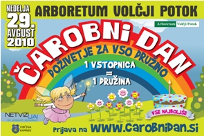 V nedeljo, 29.8.2010, se je v Arboretumu Volčji Potok odvijal ti. Čarobni dan, na katerem je sodeloval tudi Zavod RAKMO s svojo predstavitveno stojnico. Čarobni dan je letos praznoval svoj prvi rojstni dan, zato je bilo dogajanje še posebej pestro. Na prireditvi so sodelovali številni glasbeni gostje, Arboretum pa se je za en dan spremenil v pravljično deželo z zabavnimi aktivnostmi za celotno družino. Čarobni dan pa je bil tudi dobrodelno obarvan - organizatorji so obdarili več kot 100 otrok iz socialno šibkejših družin, tako da bodo lahko tudi ti otroci v novem šolskem letu obiskovali različne tečaje in aktivnosti.
