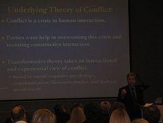 International Congress of Transformative Mediation 11 & 12 November 2011, Ljubljana, Slovenia "Changing people, changing the world. The transformative way of dealing with conflict." The Congress, which was intendend to support the development of mediation, harmonization of the transformative mediation in the Slovenian territory and the methods of alternative dispute resolution, was held in the beautiful atmosphere of Hotel Lev (5*) in the centre Ljubljana. The honoured guest speaker at the Congres was Mr. Joseph P. Folger, founding father of transformative mediation and co-author of the book "The Promise of Mediation: Responding to Conflict Through Empowerment and Recognition", which represents the ground literature work conserning transformative mediation. The Congress was held in English and Slovene language. Interpretation was provided for the plenary part of the Congress.